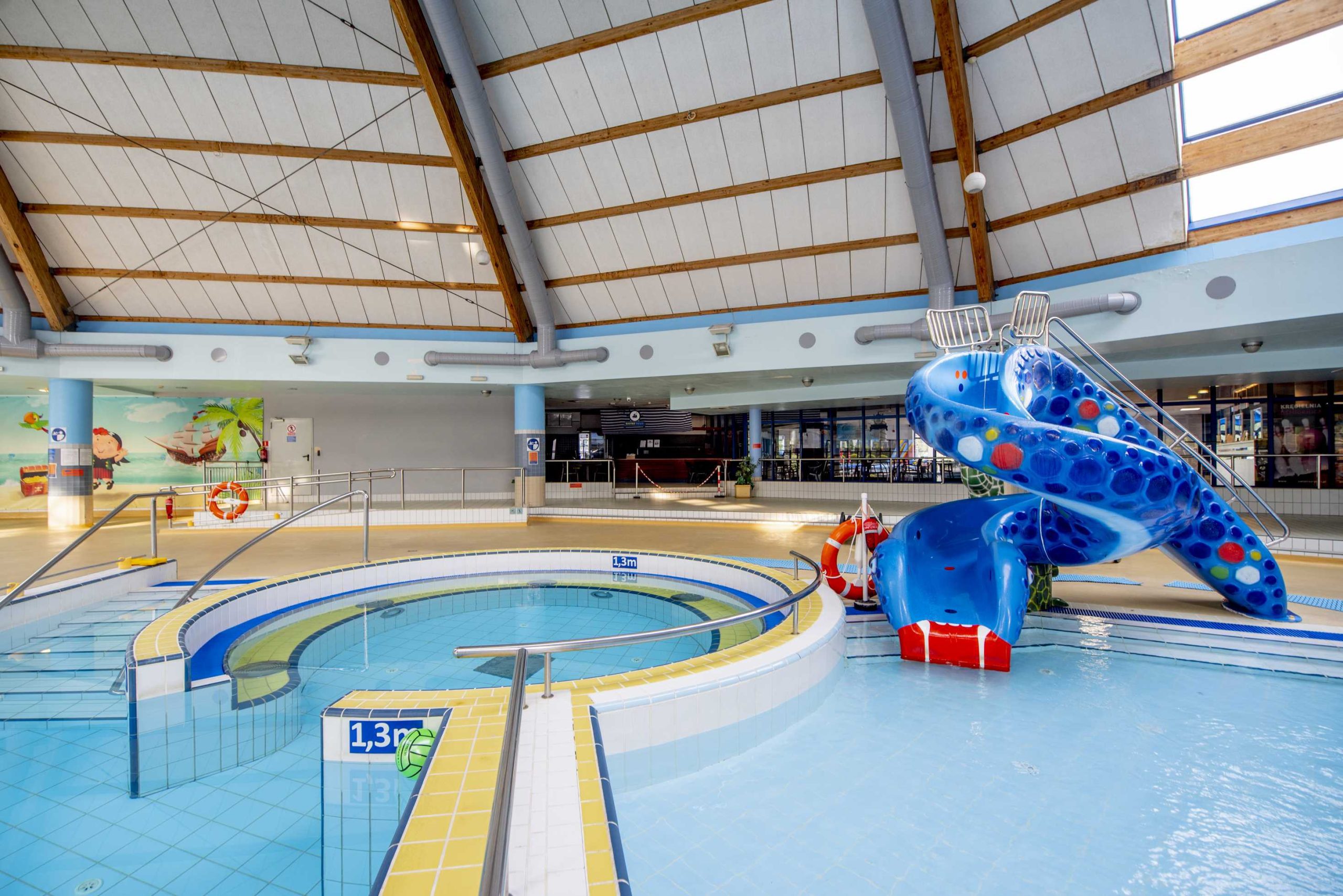 - Połączony z basenem rekreacyjnym